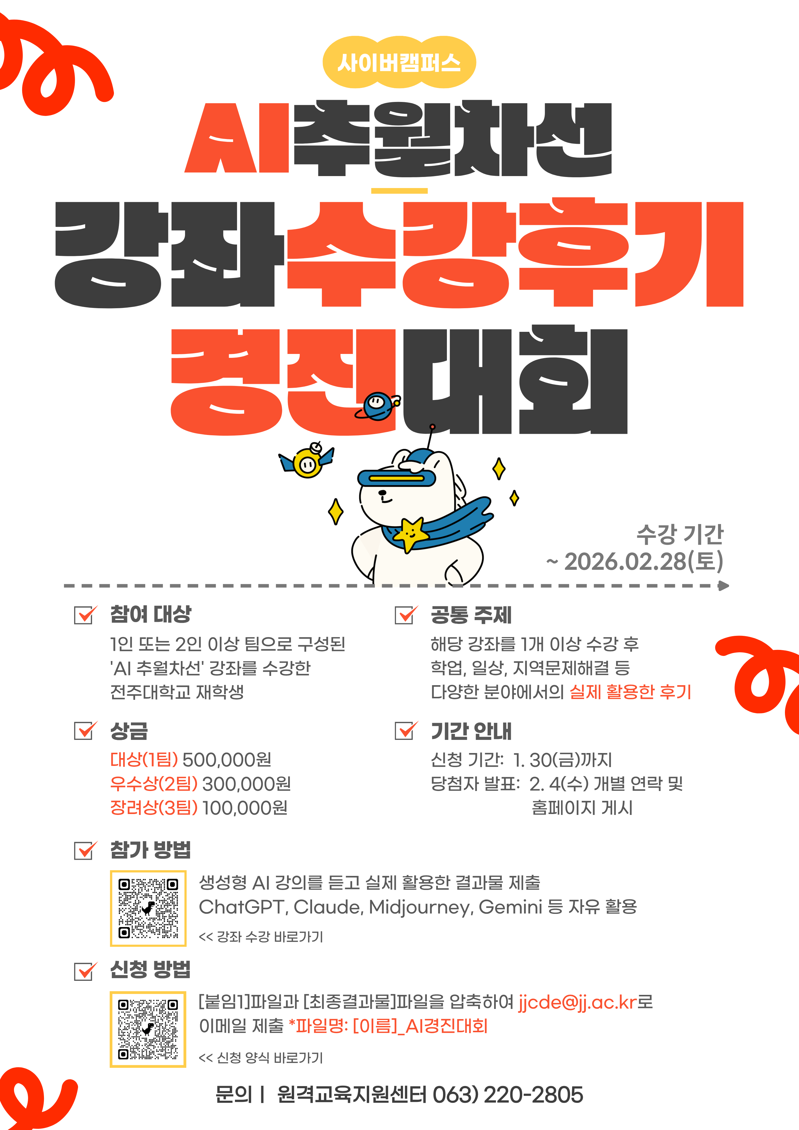 전주대학교 재학생이라면, 「AI 추월차선」 강좌를 듣고 AI를 실제로 활용한 경험만 있어도 참여 가능합니다 🙌