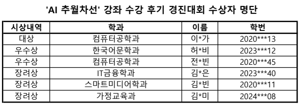 [센터소식] [원격교육지원센터] 'AI 추월차선' 강좌 수강 후기 경진대회 수상자 발표